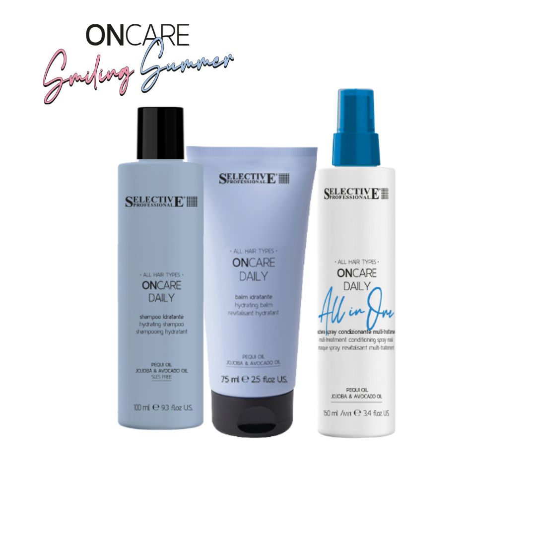 Ismerd meg a Selective Professional nyári ajánlatát: az ONCARE Daily és Color Block termékcsalád termékeit, melyeket a praktikus és modern Smiling Summer beauty csomag rejt.